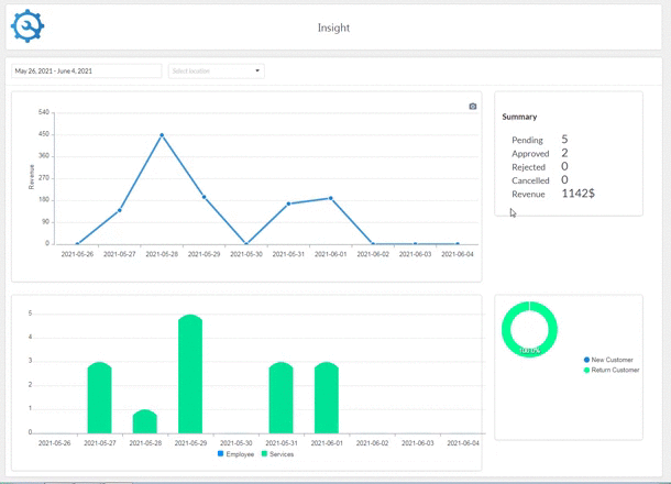 汽车、电脑、洗衣机等服务的在线预订系统。展示我旁边的商店/车库。三种交付方式(在家固定、携带、邮寄)。通过日历视图或预订管理重新安排。